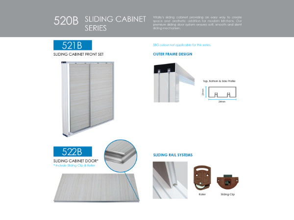 Vitally’s sliding cabinet providing an easy way to create space and aesthetic addition for modern kitchens. Our premium sliding door system ensures soft, smooth and silent sliding mechanism.