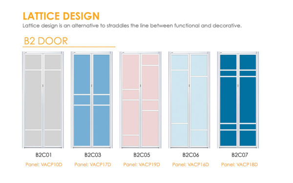 Our Lattice Door Design will definitely create a spacious home concept by adding an extra dimension with seamless floor look to your living area. Its flexibility of combinations offers unequalled performance and limitless design possibility.
